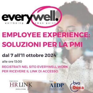 Everywell, patrocinato da AIDP per il progetto PMI e realizzato in collaborazione con Bva Doxa, è promosso da HR Link, portale di aggiornamento, approfondimento e incontro, punto di riferimento per tutti coloro che si occupano di HR.